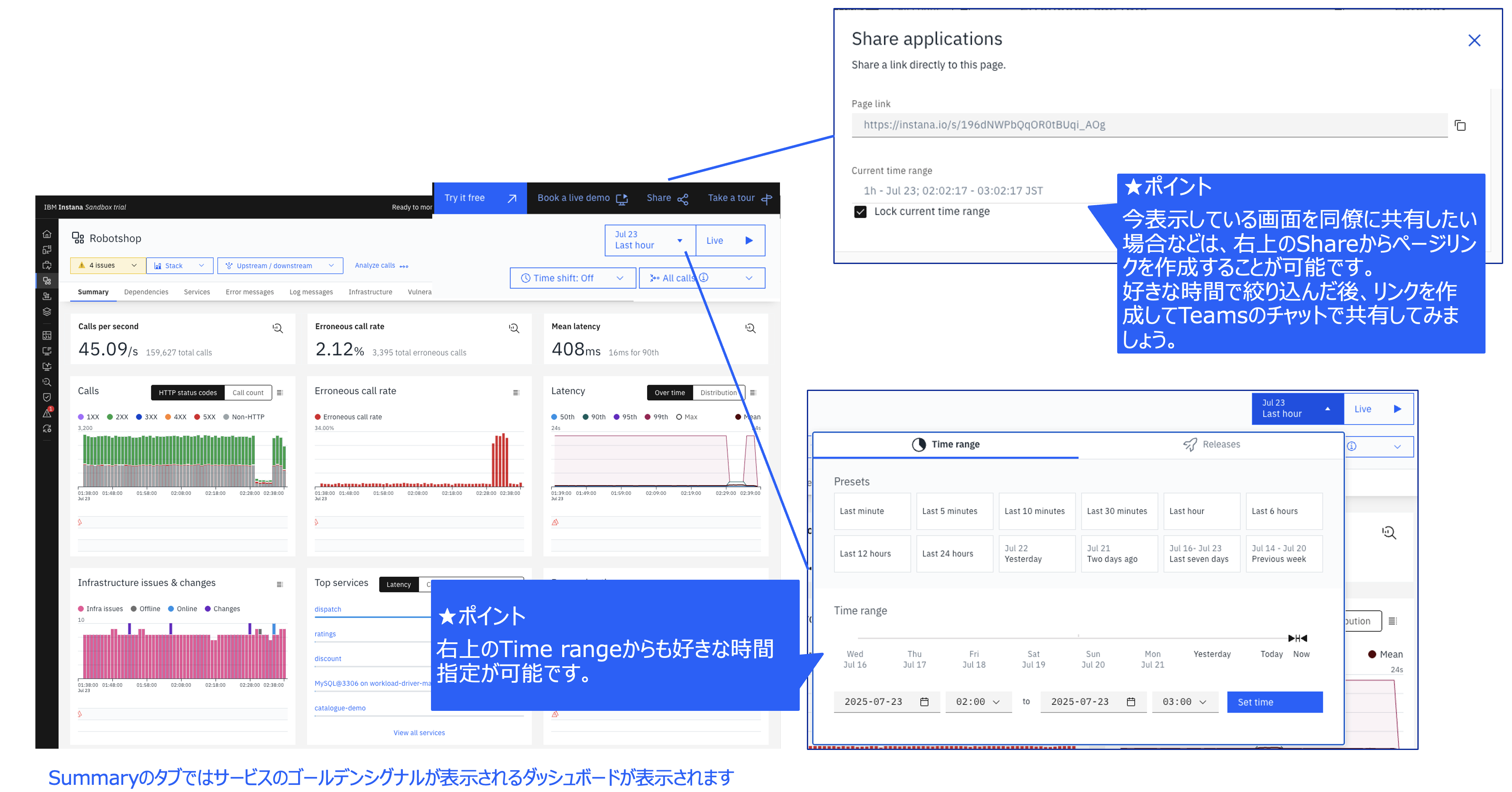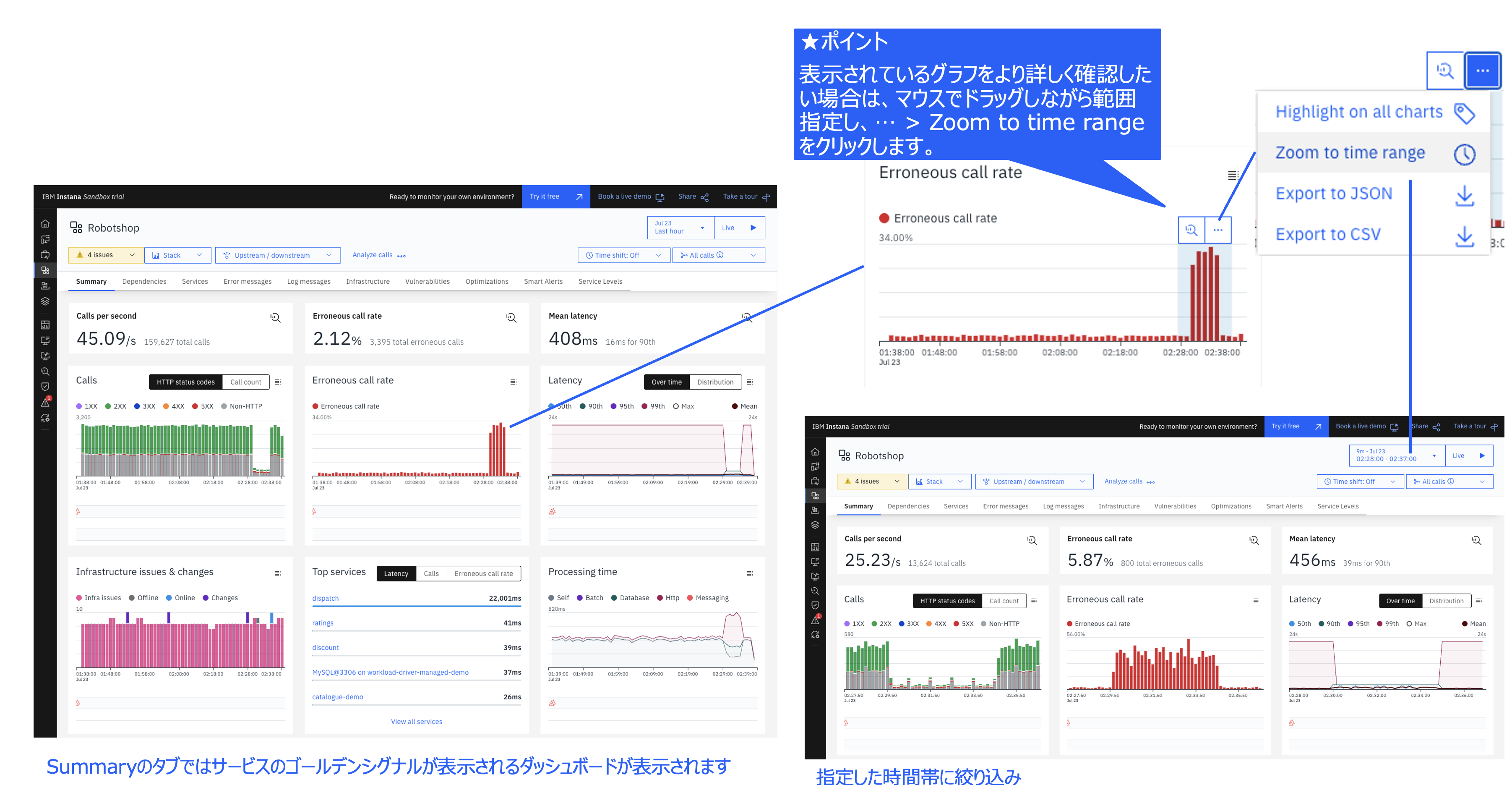 - アプリケーションのパースペクティブ(機能説明): https://www.ibm.com/docs/ja/instana-observability/1.0.302?topic=capabilities-application-perspectives