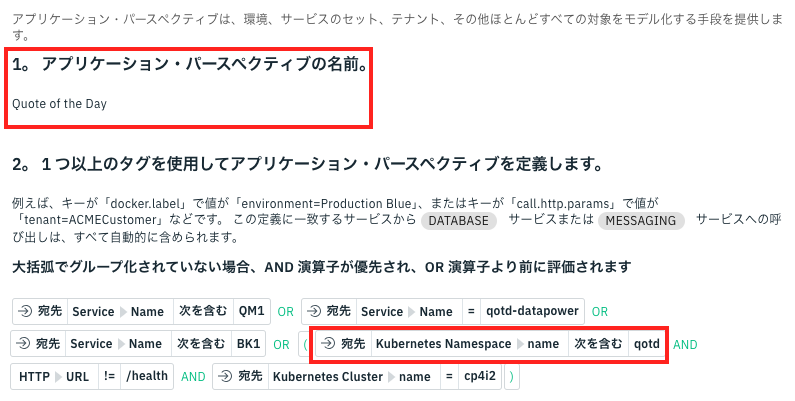 - アプリケーションのパースペティブ(設定): https://www.ibm.com/docs/ja/instana-observability/current?topic=applications-application-perspectives