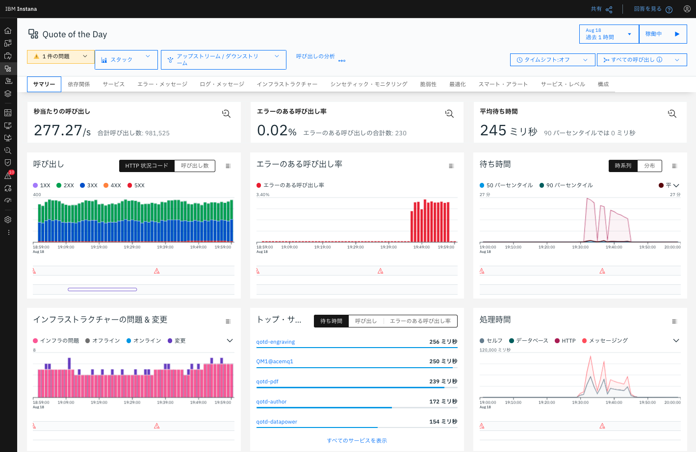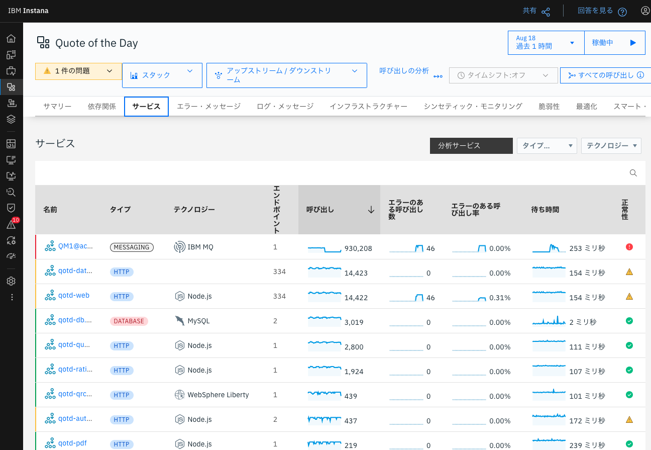 それでは、本書では Quote of the Day という OpenShift 上のアプリケーションを Instana で可視化した例を見てみましょう。