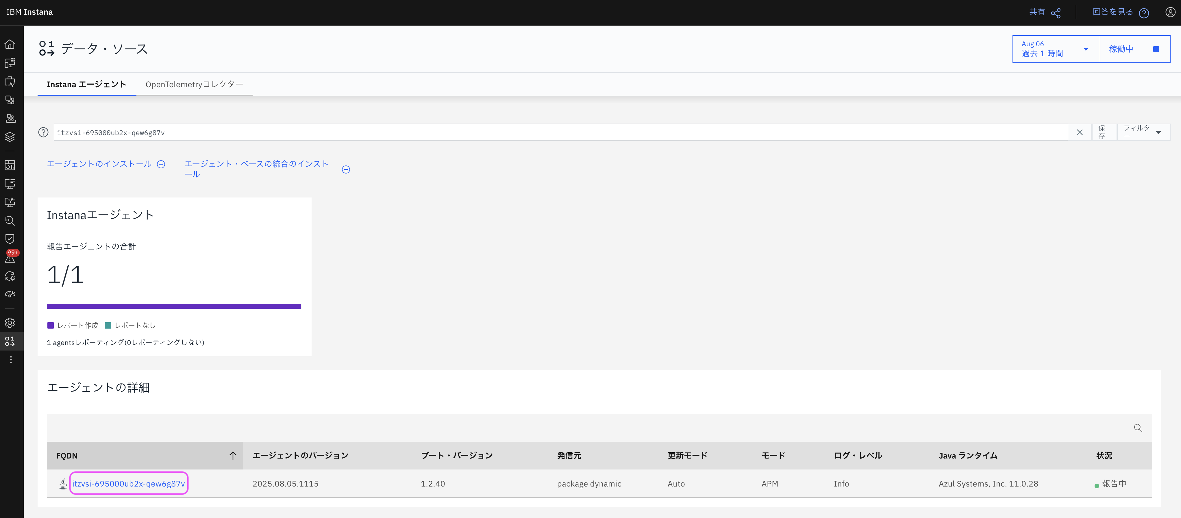 データ・ソースのページで、インストールしたAgentを確認することができます。