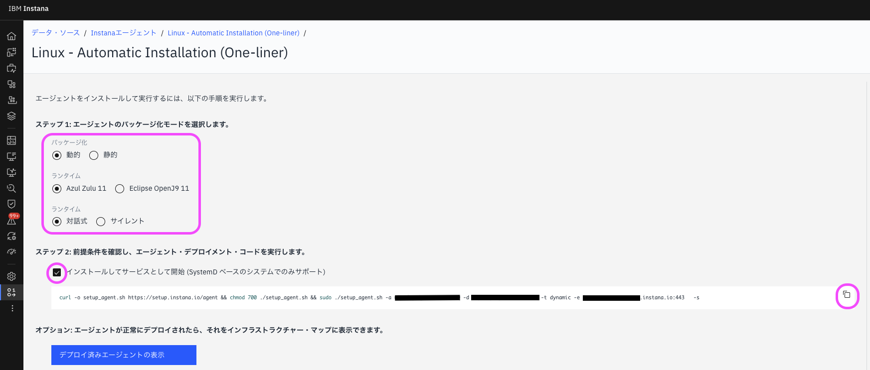 公式ドキュメント:https://www.ibm.com/docs/ja/instana-observability/current?topic=linux-installing-agent