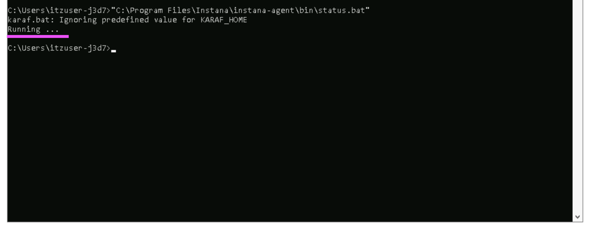 Agentの起動確認は下記コマンドをコマンドプロンプト上で実行します。