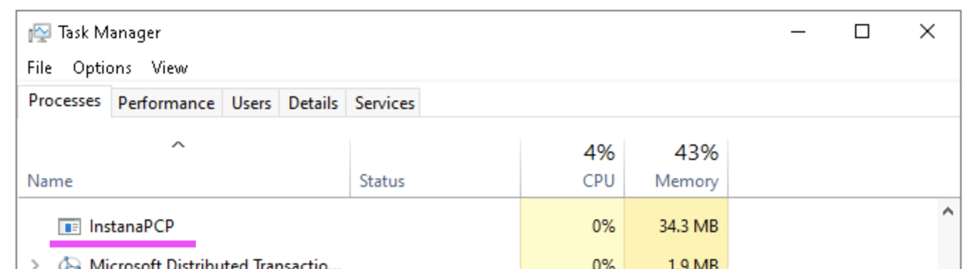 権限がないと InstanaPCP.exe が起動しない可能性があります。