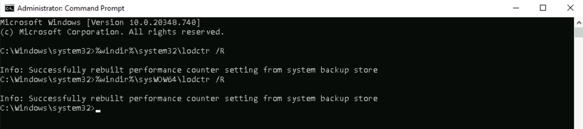sysWOW64ディレクトリにあるパフォーマンスカウンターを再構築するため、次のコマンドを実行します。