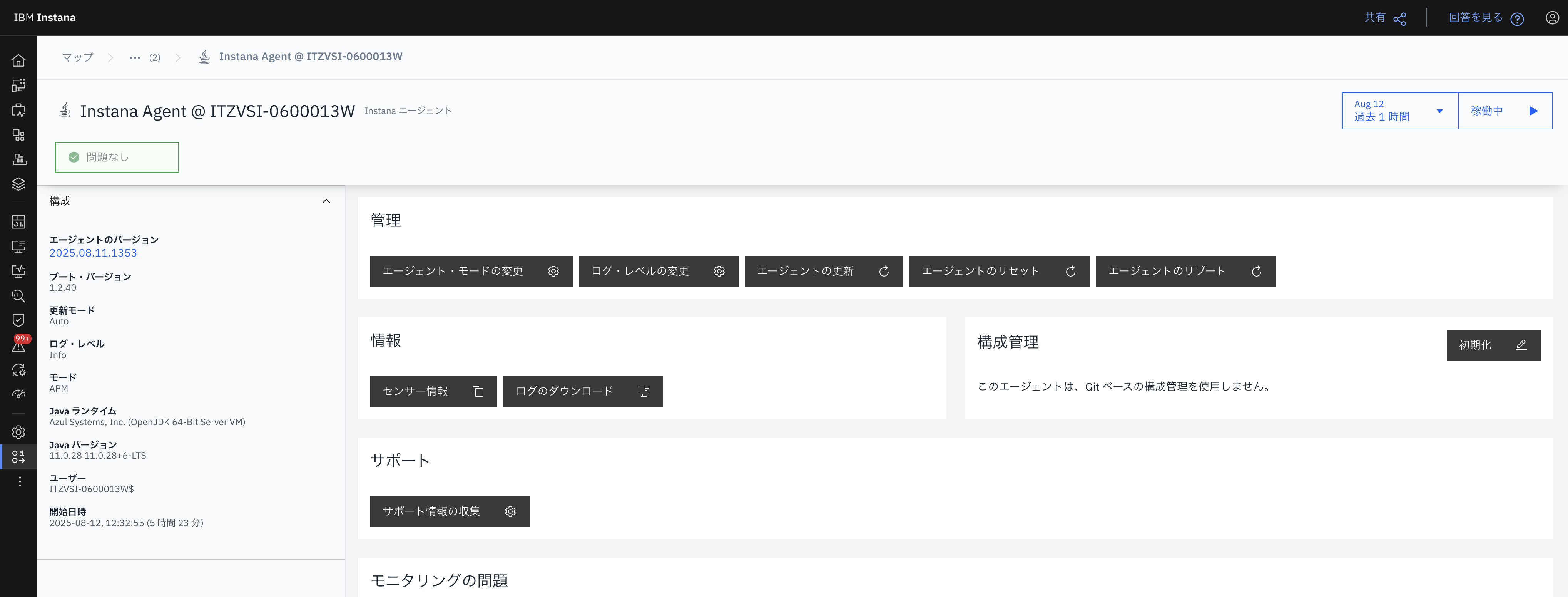 「ダッシュボードを開く」をクリックすると、下の画像のように、Agent詳細ページを表示することができます。