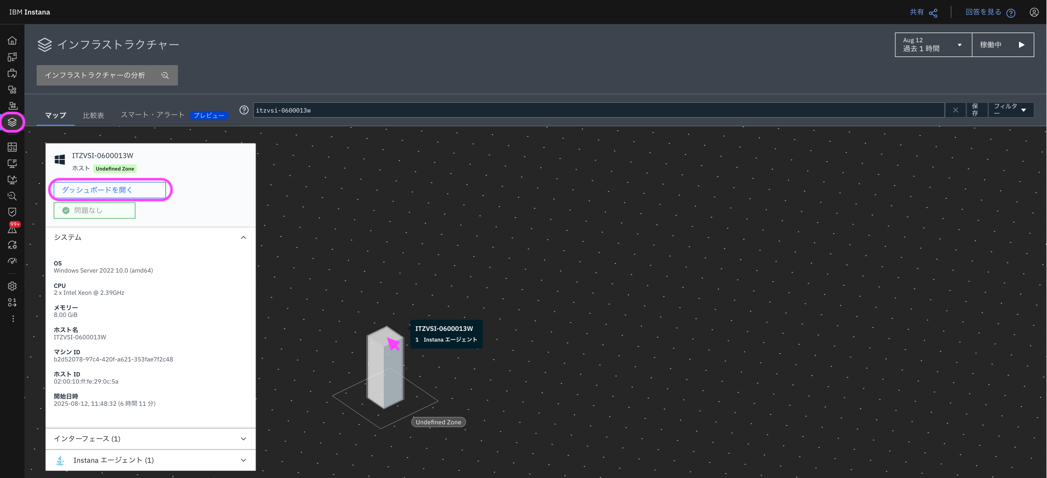 左側のサイドバーから、インフラストラクチャーページを表示してみましょう。