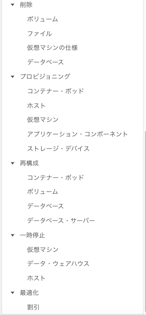 オンプレミスの環境では、クラウドのように節約や投資という項目は表示はありません。基本的にはパフォーマンスの改善であることやvMem、vCPU、Heap、ストレージといった、余剰を割り振ること、過剰に割り振られているものを変更することが可能です。しかし、オンプレミスの環境だからこそ、パフォーマンスの改善は必要であり、社内で利用する環境に無駄な部分があれば改善が必要です。