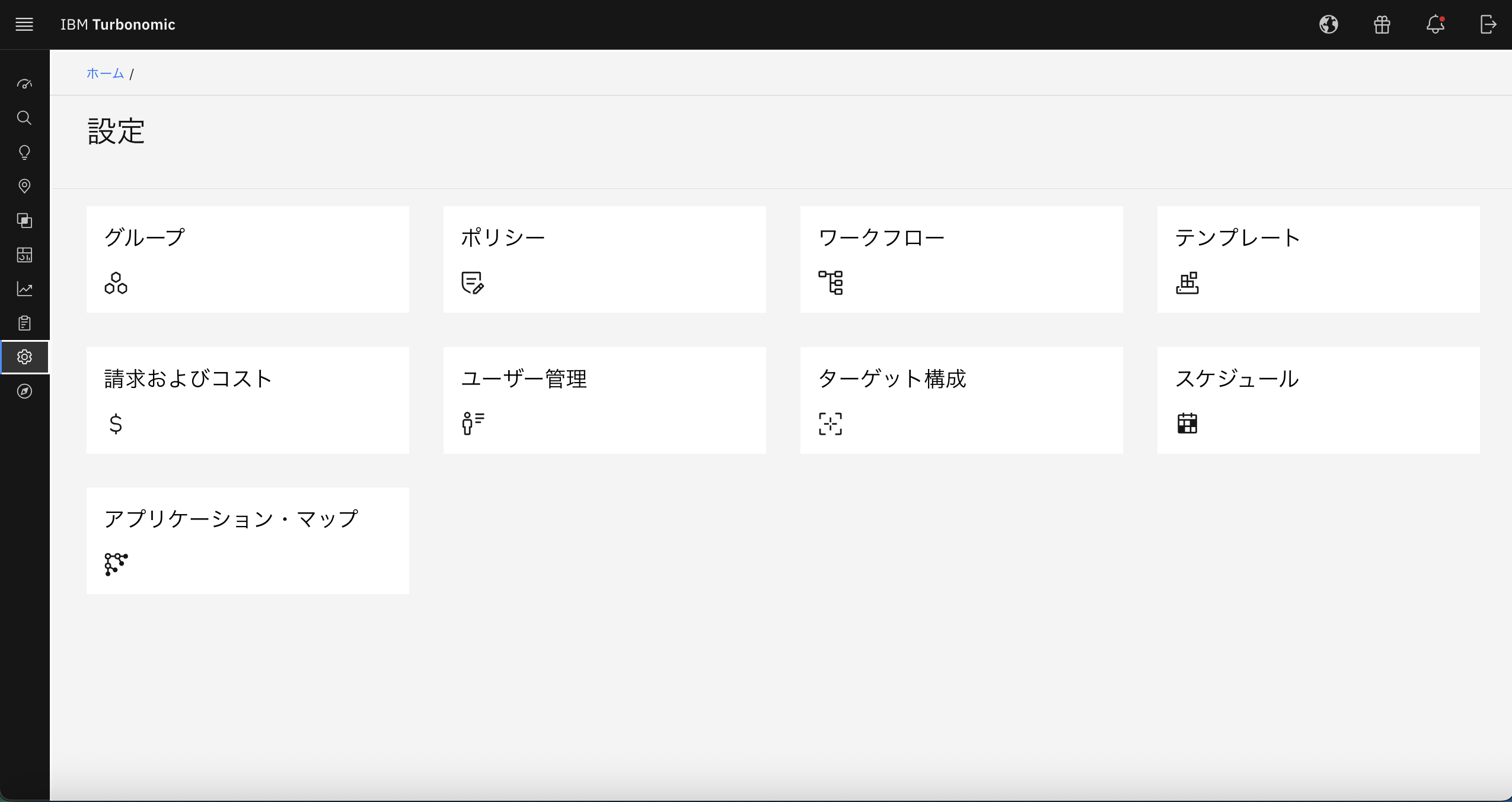設定は、Turbonomicにおける、ユーザー管理や管理するべき対象を登録するターゲット設定、自動化を促進するためのポリシーの登録が可能です。