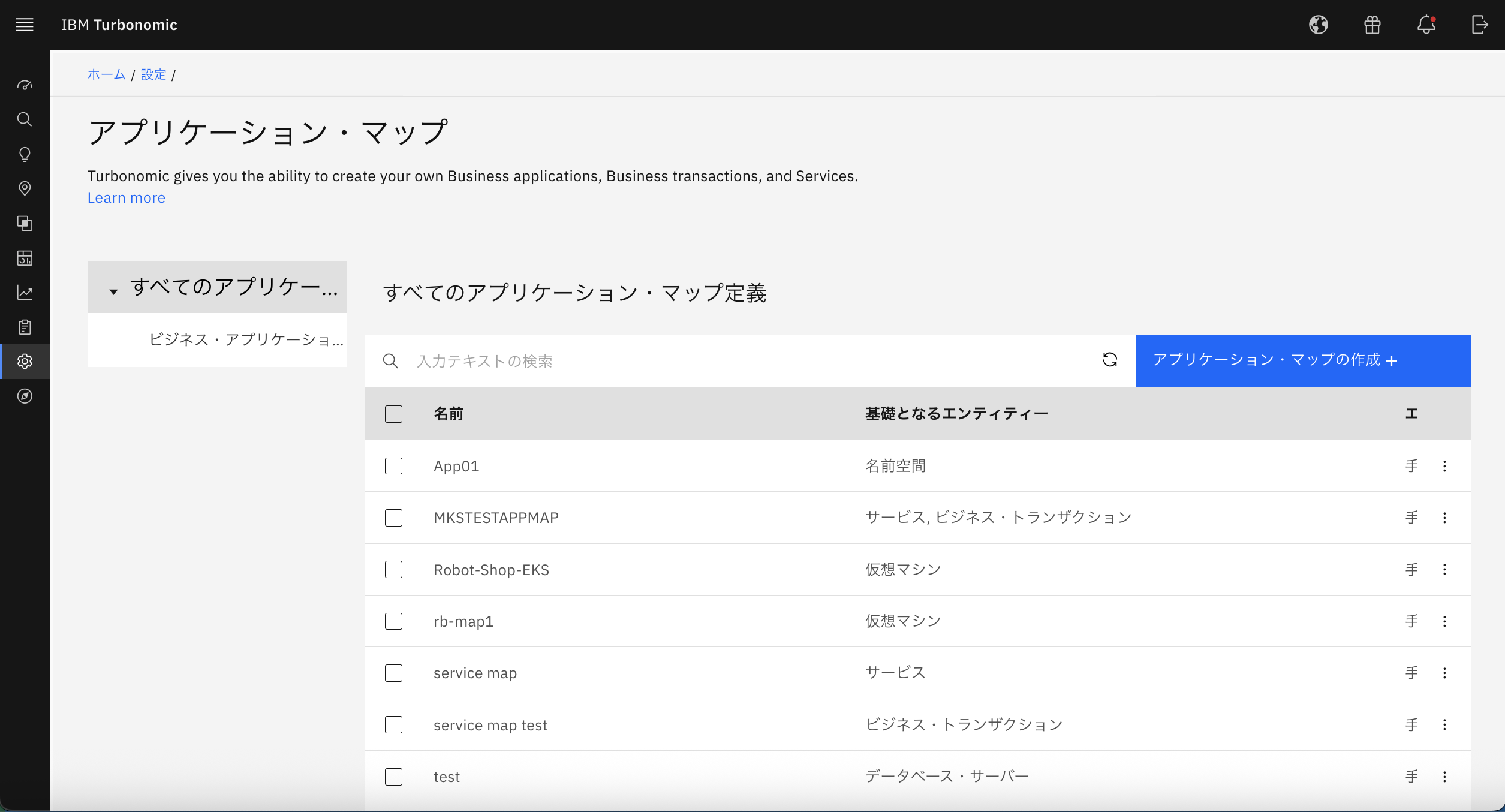 公式ドキュメント:アプリケーション・マップ https://www.ibm.com/docs/ja/tarm/8.17.x?topic=applications-application-map