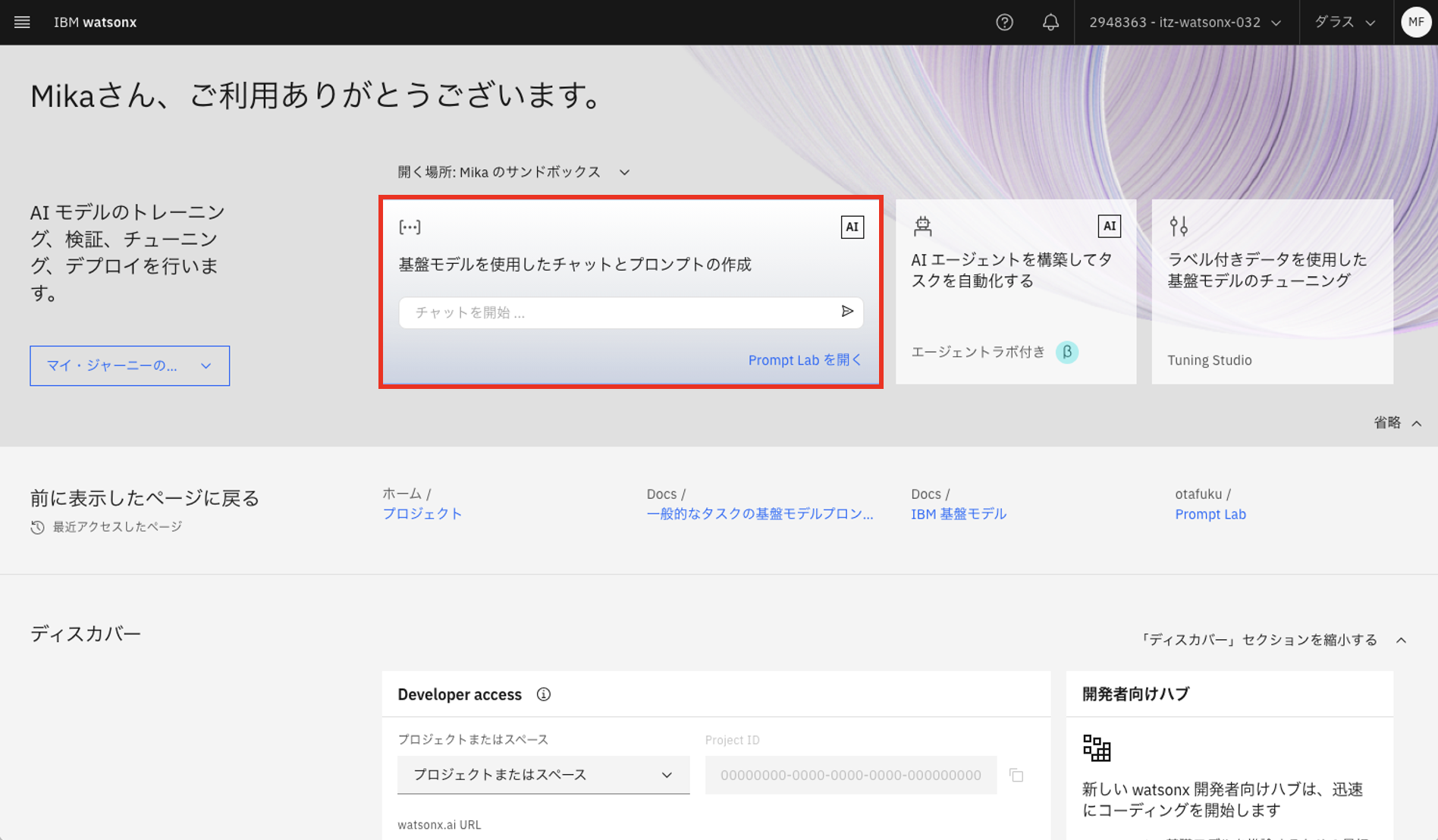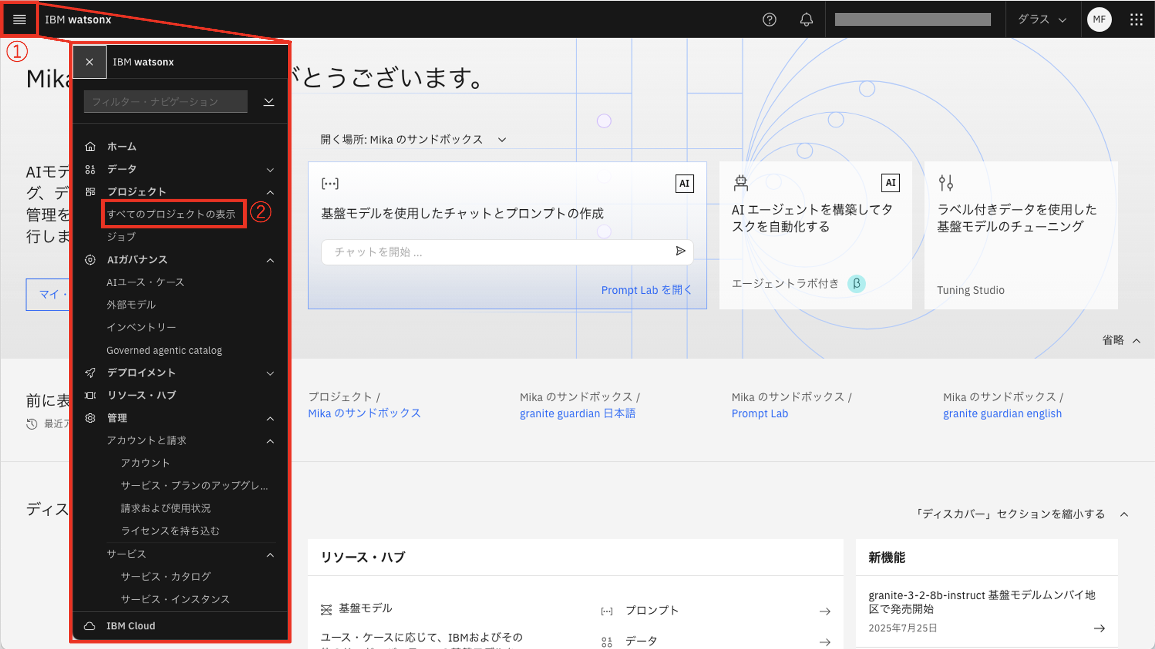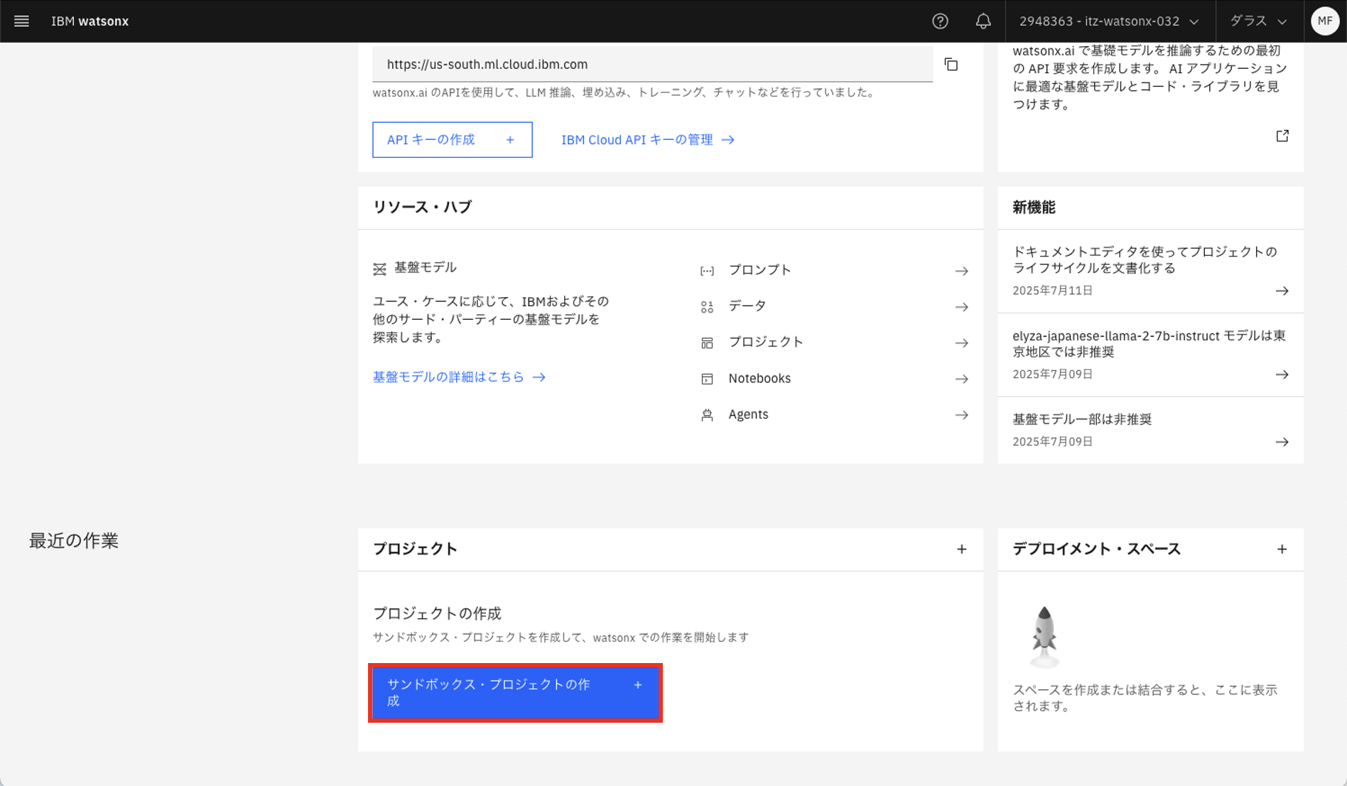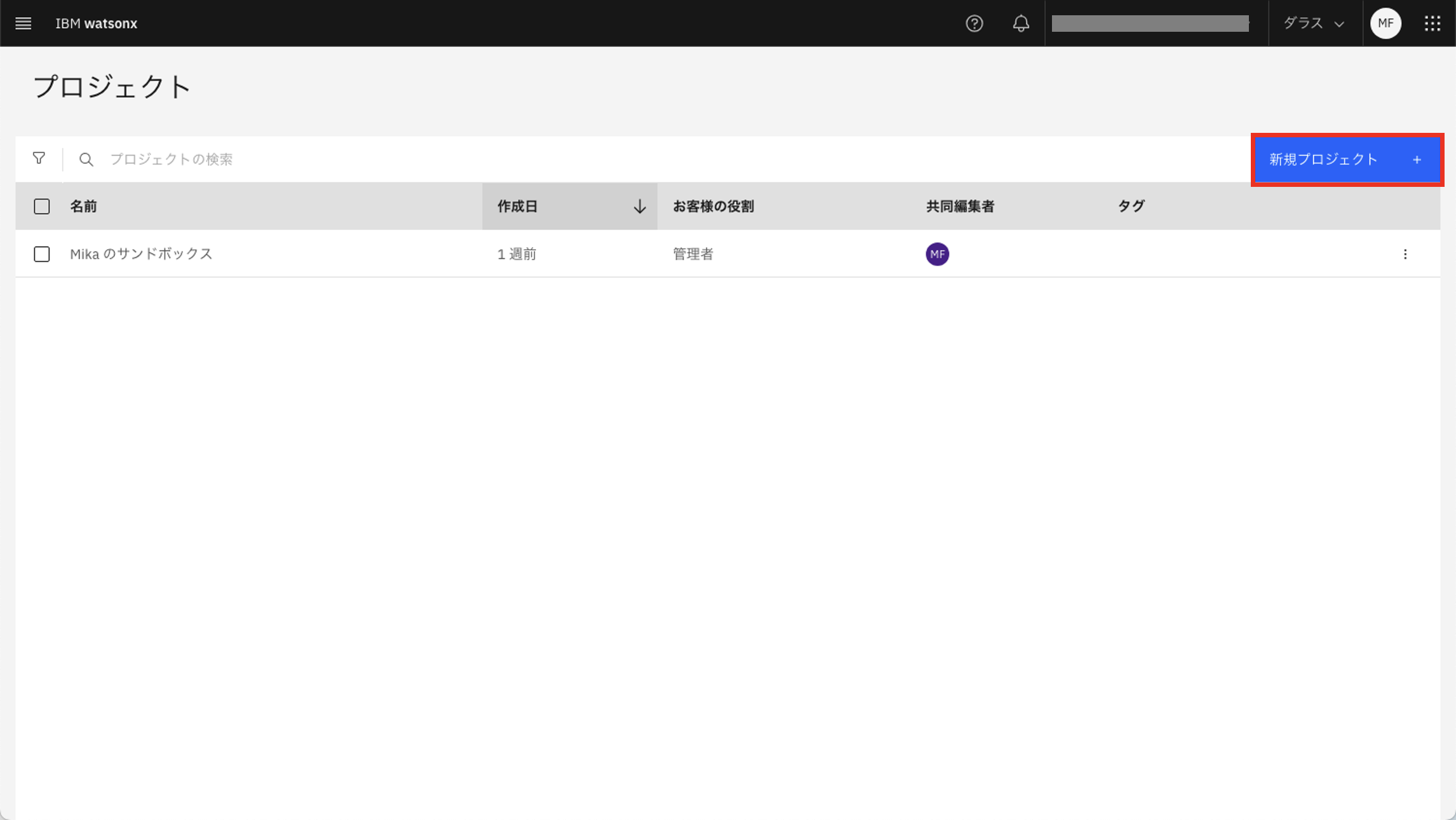 watsonx.aiを利用するには、プロジェクトを作成する必要があります。