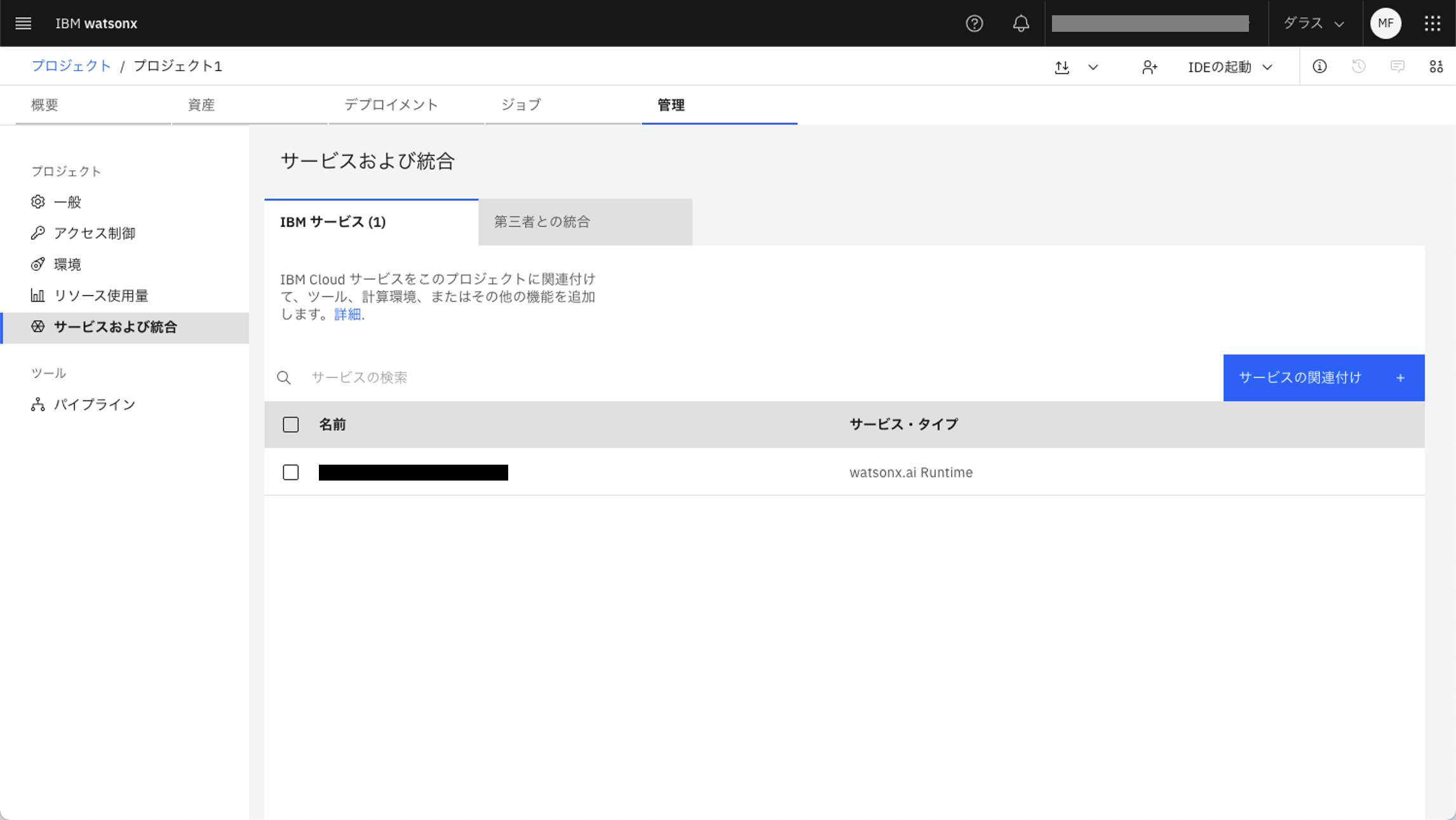 watsonx.ai Runtime(旧名 Watson Machine Learning) のサービスの関連付け