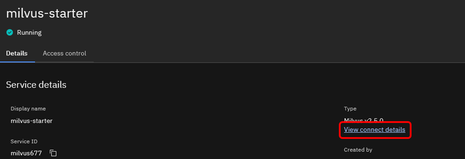 これで、Milvus接続に必要な情報(GRPCホスト名/ポート、ユーザー/パスワード)を入手できました。