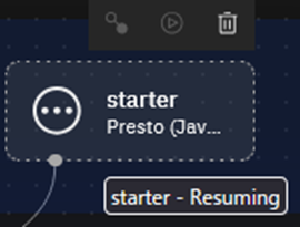 停止や起動が完了するまでには、少し時間がかかる場合があります。このような場合、左側のマークが点滅し、マウスオーバーすると「Resuming」などと表示されます。