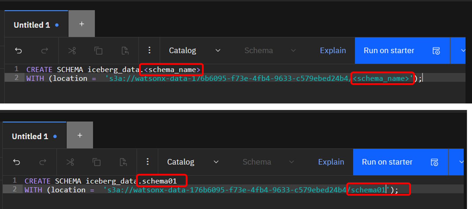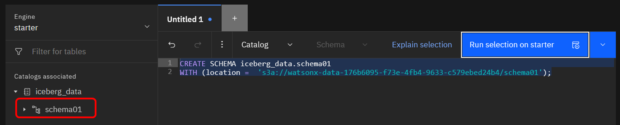 WITH (location = 's3a://watsonx-data-176b6095-f73e-4fb4-9633-c579ebed24b4/schema01');
