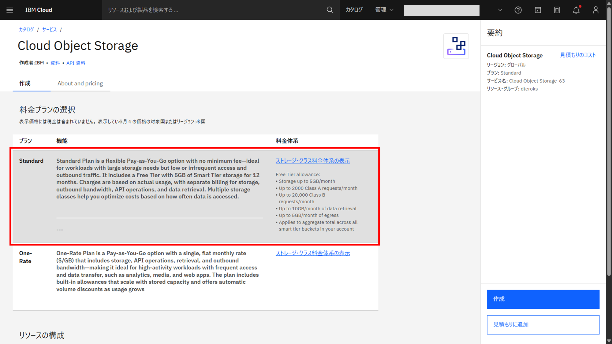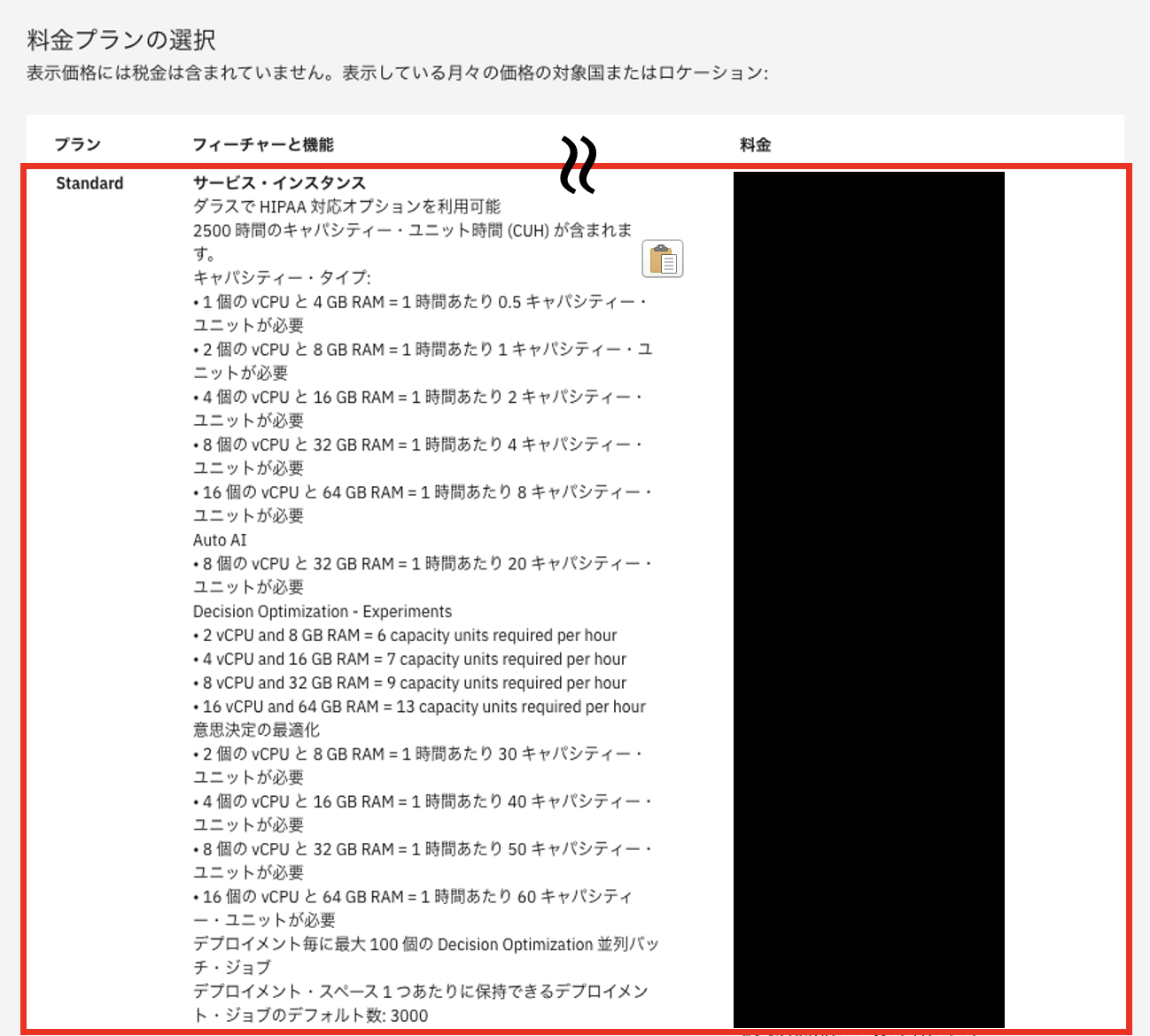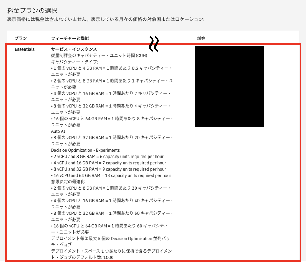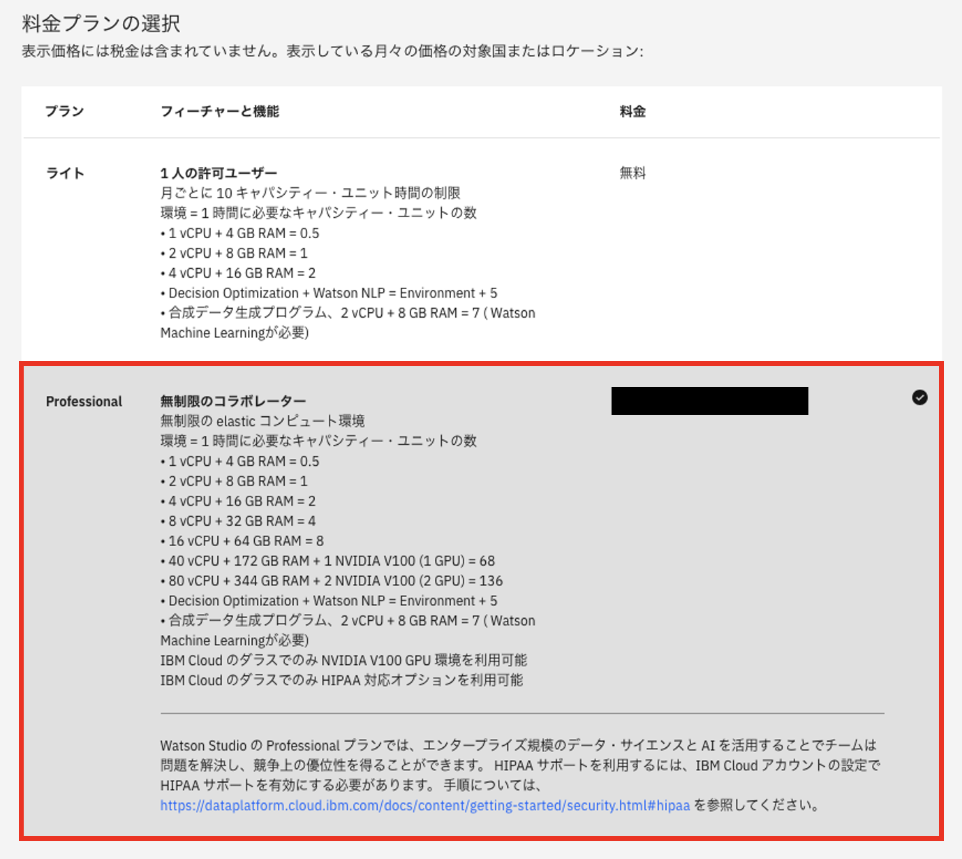 - 料金プランの選択 セクションで、使用するプランを選択する