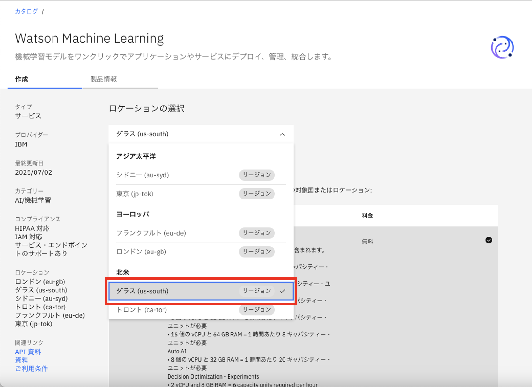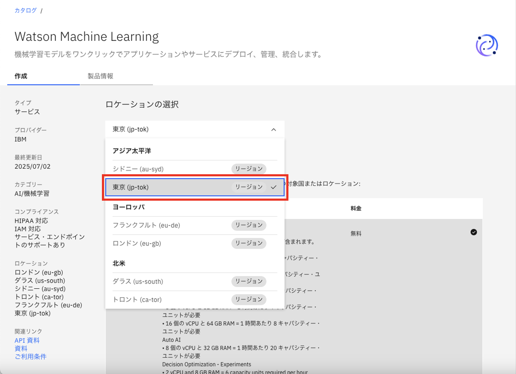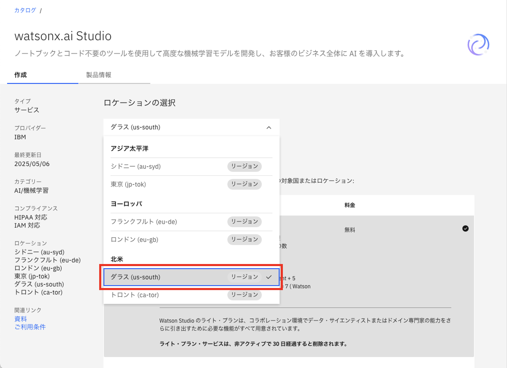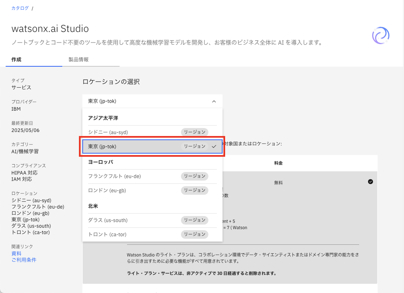- watsonx.ai Runtime(Watson Machine Learning)の作成