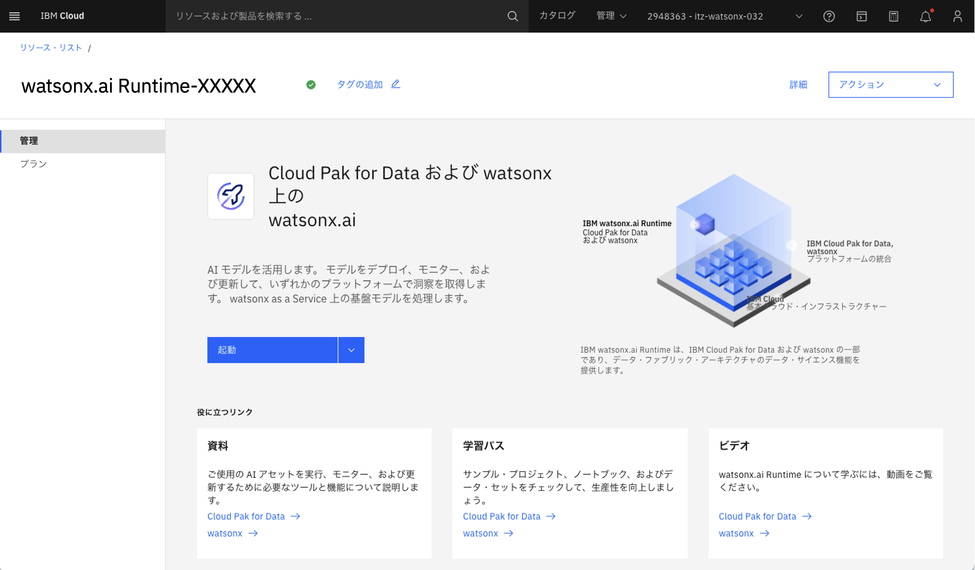 - 作成した watsonx.ai Runtime の詳細画面に自動的に遷移したら完了