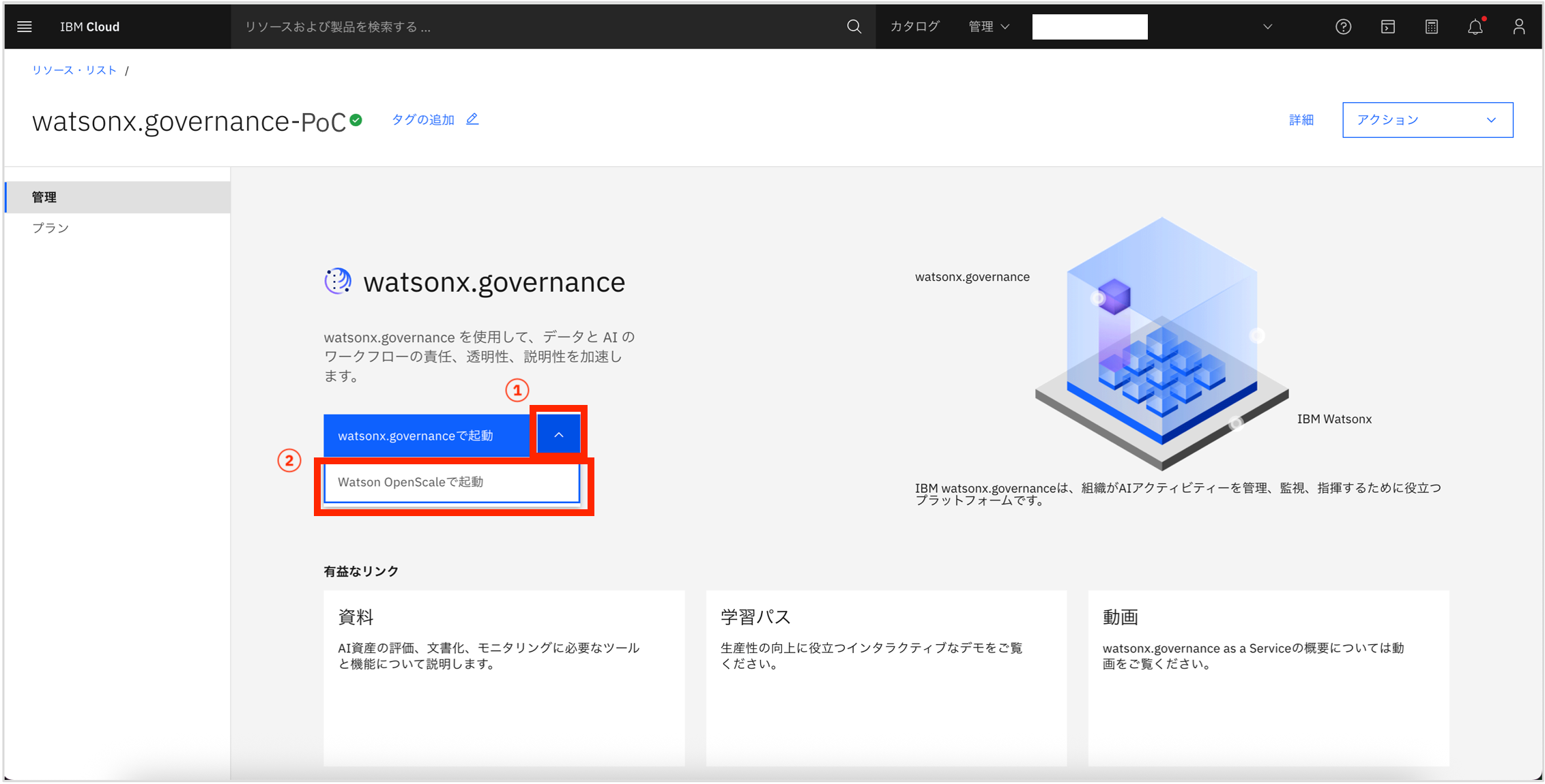 - ドロップダウンリストから「Watson OpenScaleで起動」を選択