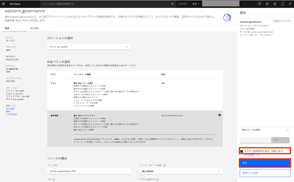 - 作成した watsonx.governance の詳細画面に自動的に遷移したら完了