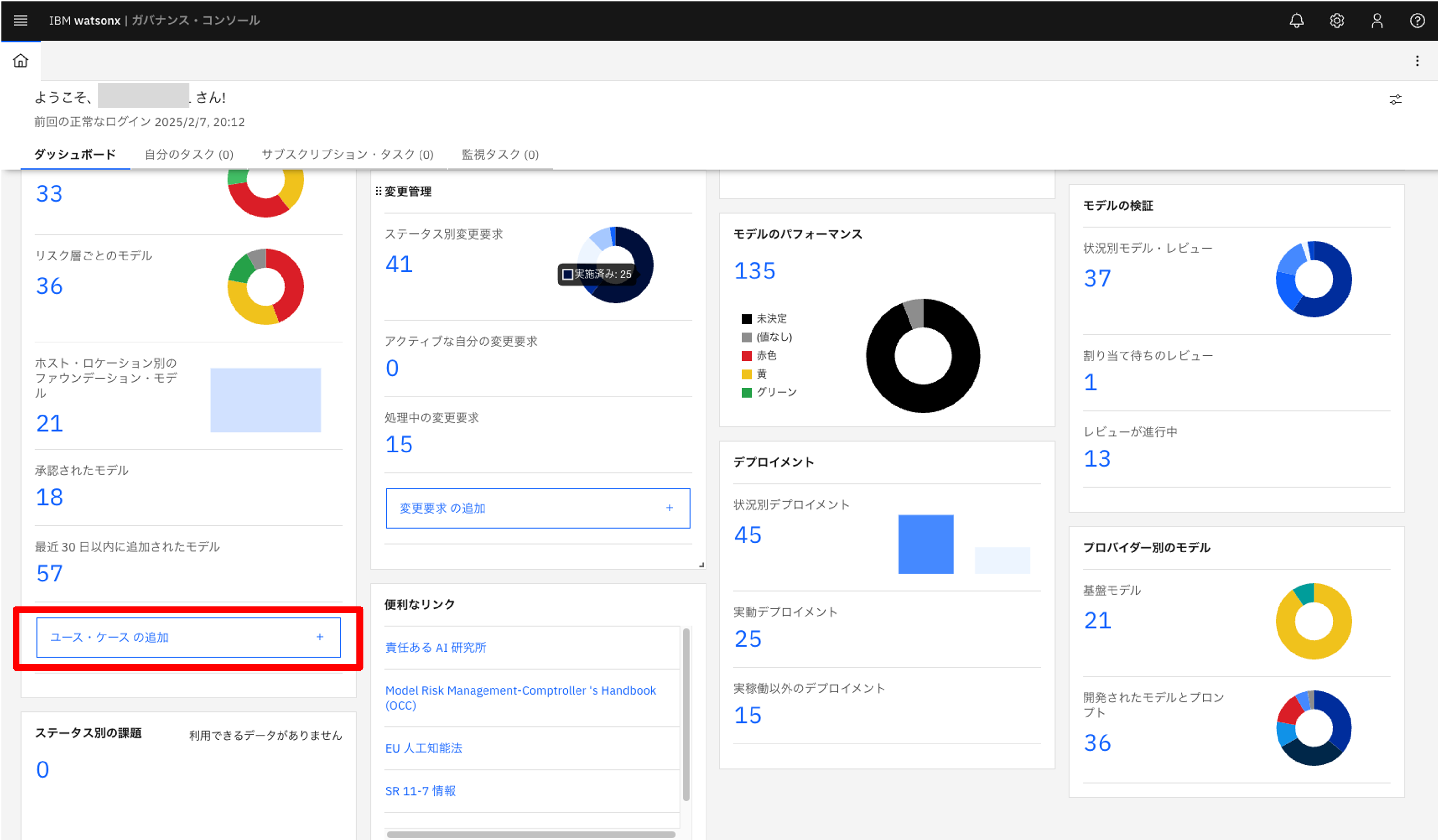 - ユースケースを新規作成します。ダッシュボードより ユース・ケース の追加 をクリックします。