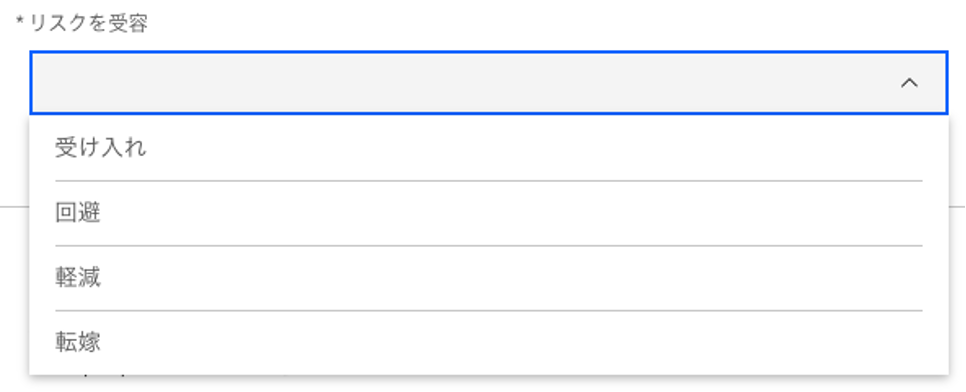 リスクの受容方法は、「受け入れ」「回避」「軽減」「転嫁」から選択します。ここで「軽減」を選択します。