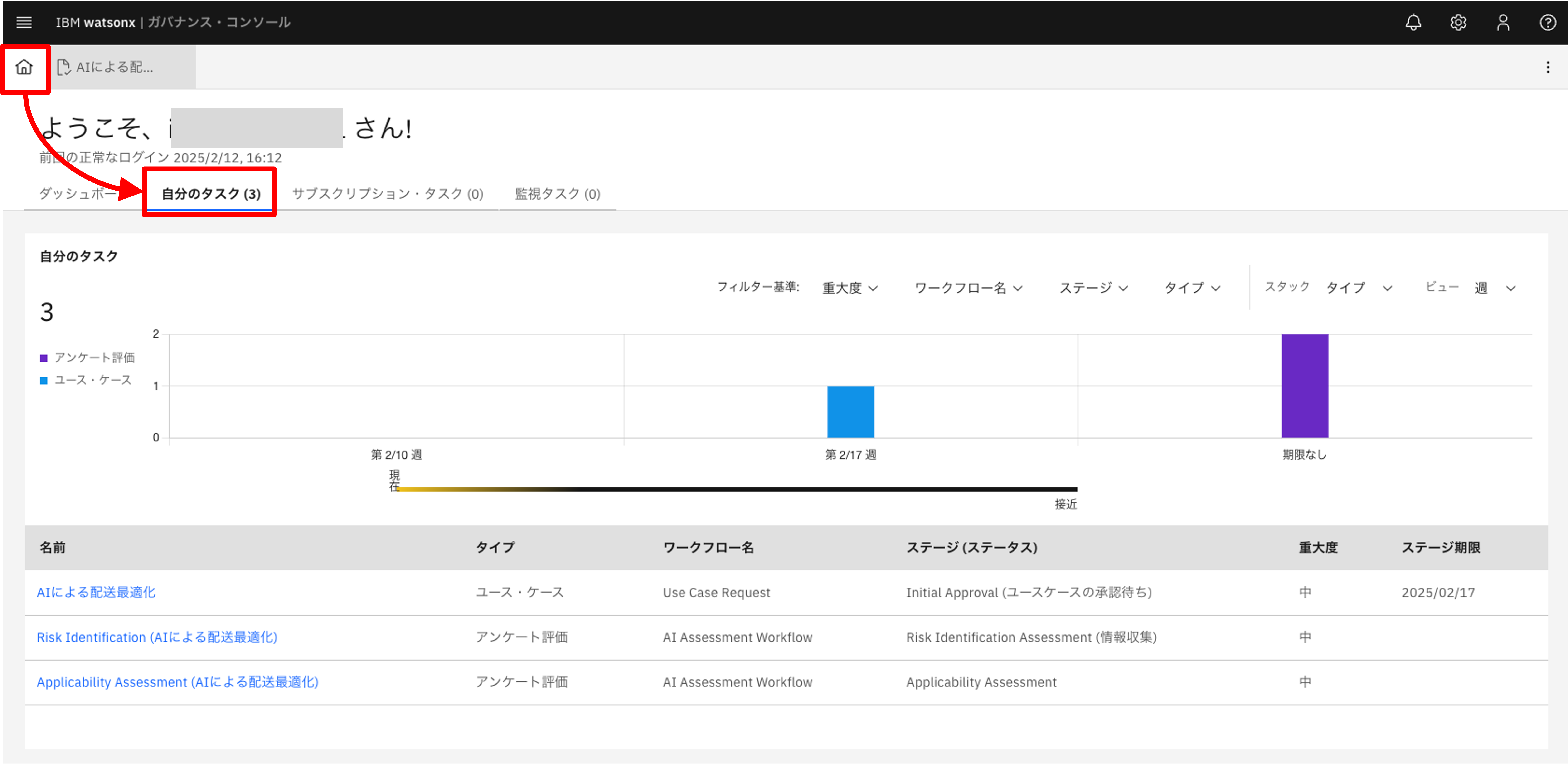- ホーム画面に戻り 自分のタスク タブで割り当てられているタスクを確認することができます。