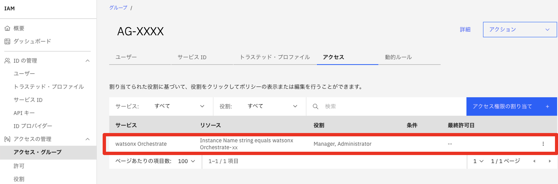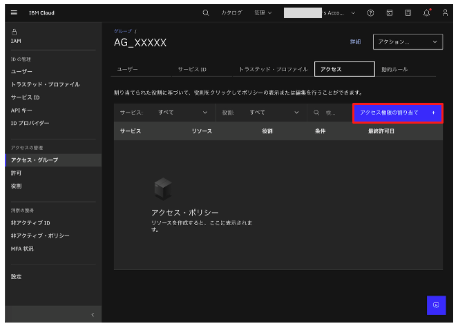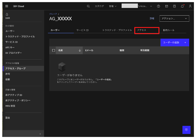 - 「AG_XXXXX」アクセス・グループが作成されます。「アクセス」タブをクリックします。