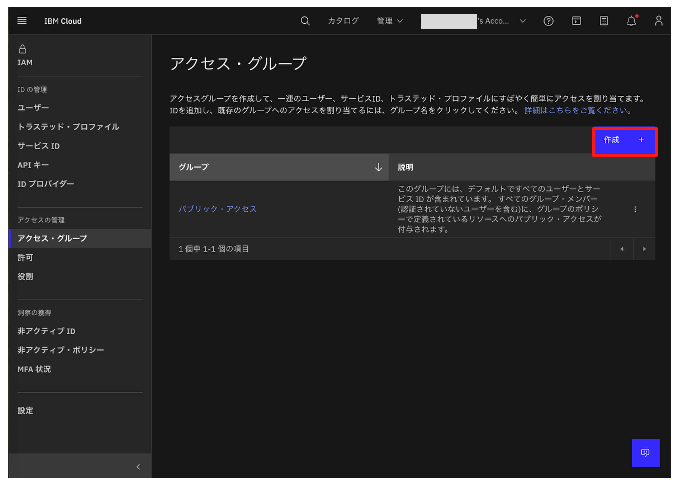 - 画面左側のメニューから「アクセス・グループ」をクリックします。
