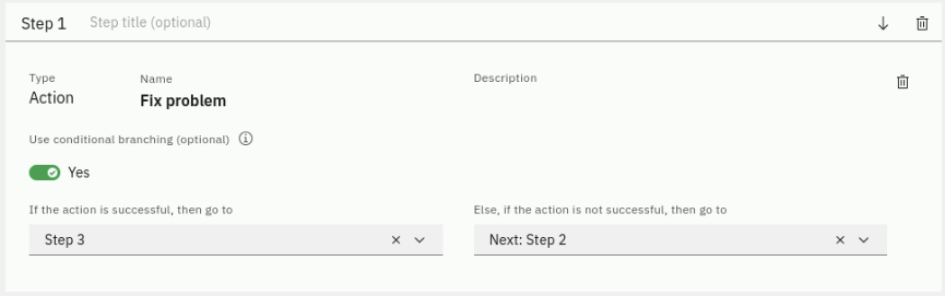 - If action Step 1 is successful, execution should jump to Step 3, bypassing Step 2