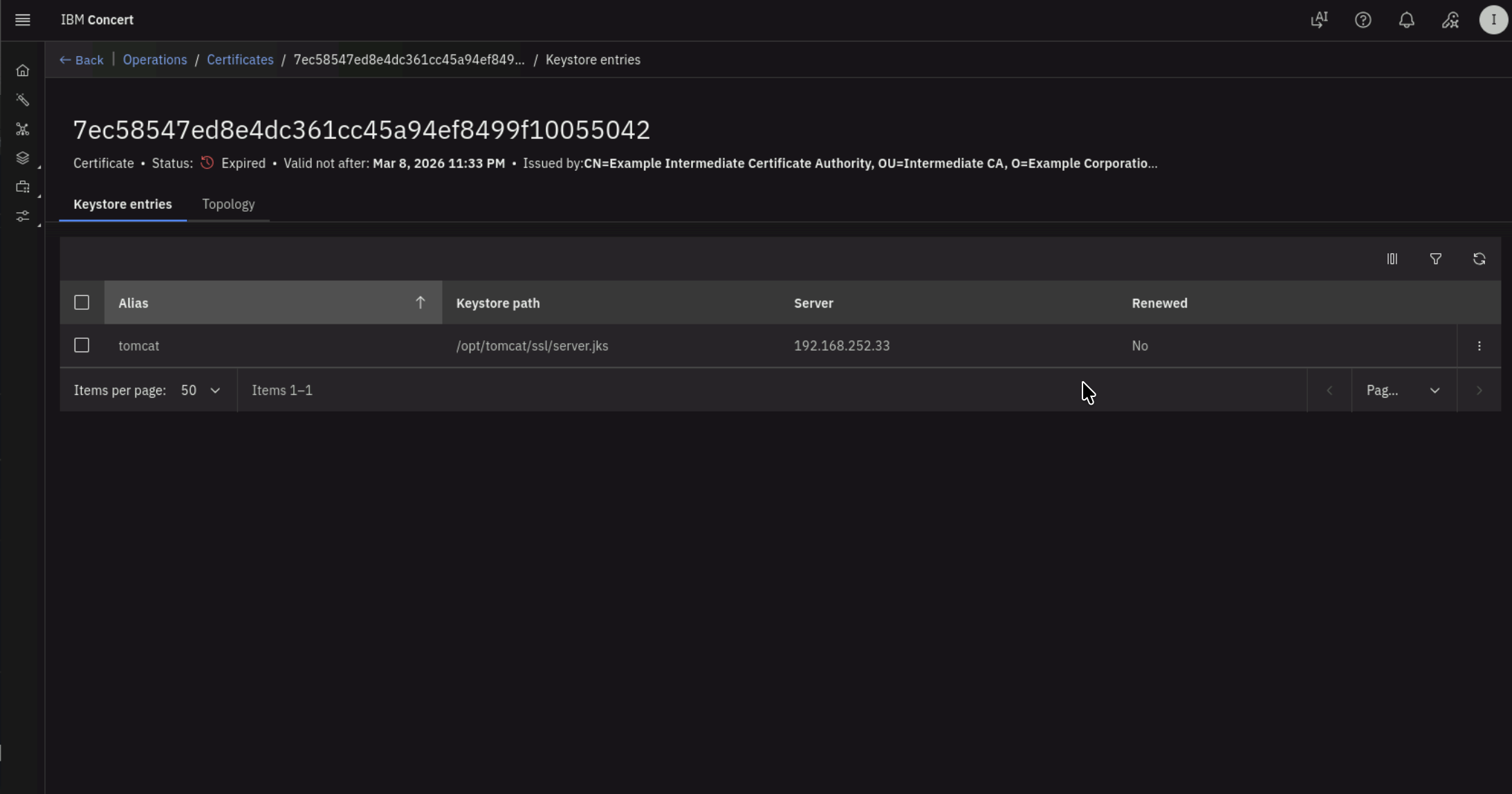 Let's verify all Certificates in Apache Tomcat Java Keystore (JKS) are discovered and present in Concert UI.