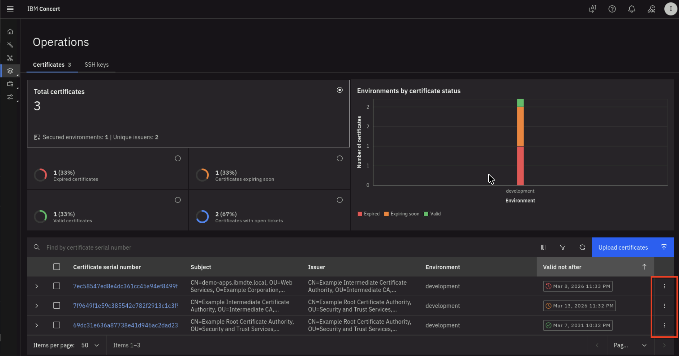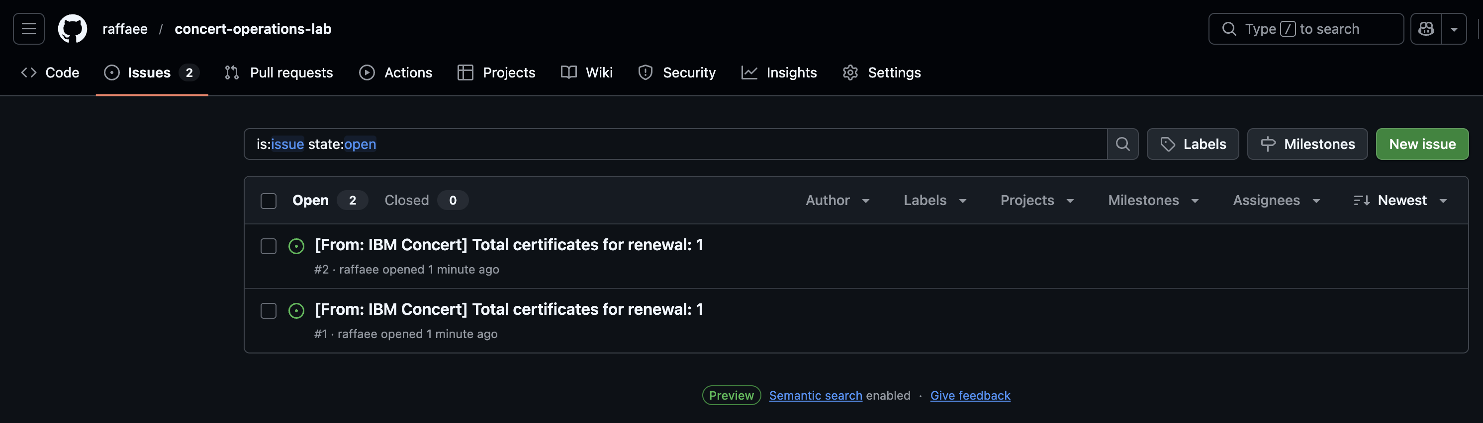 In this section, we will configure Linux_Keystore_Cert_Discovery Workflow to discover certificates from Apache Tomcat Java KeyStore, then ingest them into Concert. We will also verify that the certificates are visible in Concert's Operations Certificate page and that GitHub issues have been auto-created for both expired and expiring certificates.