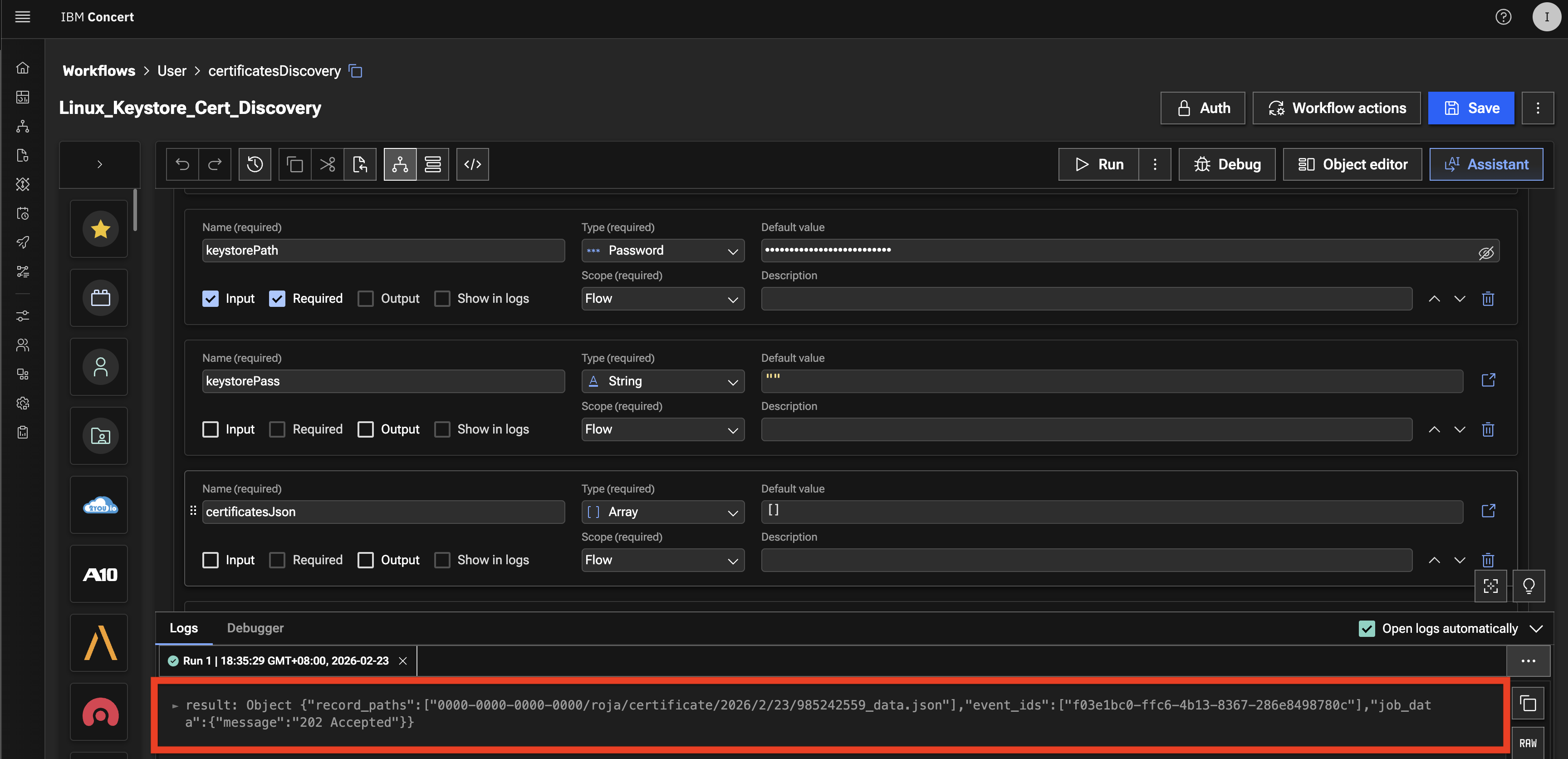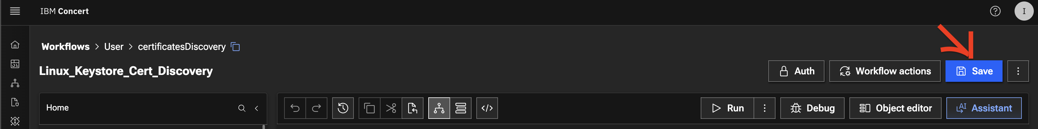 You will now run Linux_Keystore_Cert_Discovery Workflow to discover certificates from Apache Tomcat Java KeyStore, then ingest them into Concert.