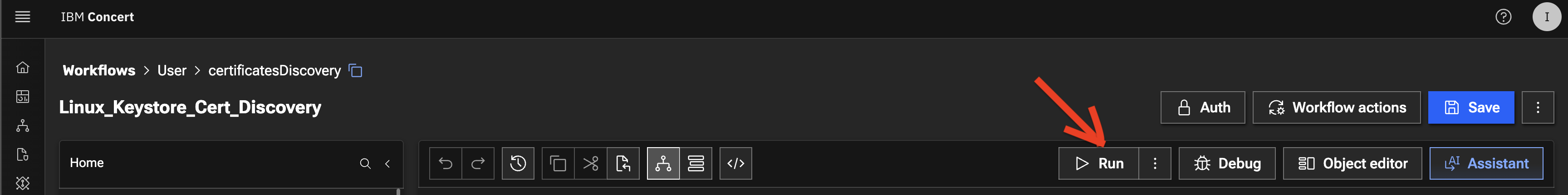 - Click Run icon for Linux_Keystore_Cert_Discovery Workflow