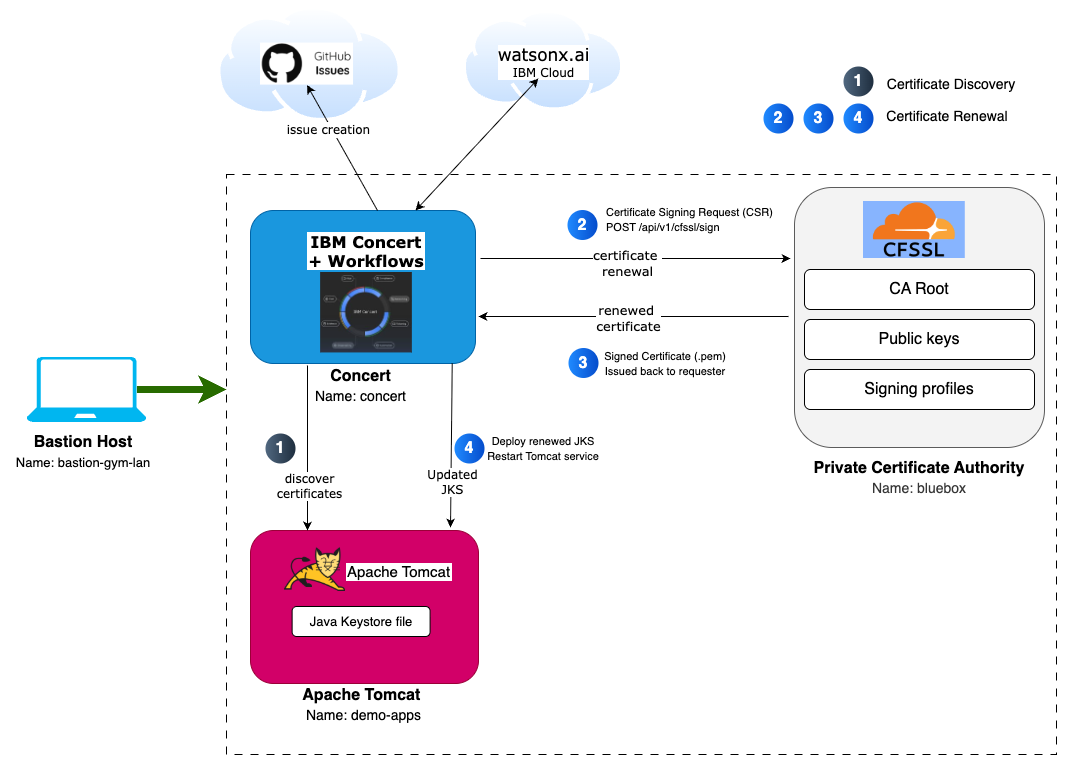 CFSSL is Cloudflare's open-source PKI (Public Key Infrastructure) toolkit. Its an open-source Certificate Authority (CA) and toolkit that provides a simple, lightweight way to issue and manage certificates during lab exercises. In this lab environment, CFSSL acts as the local private CA used to generate root and intermediate certificates, sign certificate requests, and issue server certificates that will be discovered and renewed through automated workflows. For more information, visit the CFSSL GitHub repository.