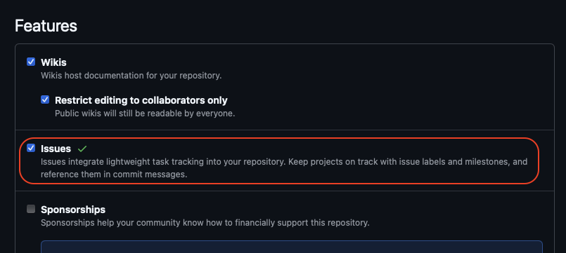 You will enable GitHub issues in your forked repository to allow Concert to create issues for the detected vulnerabilities.