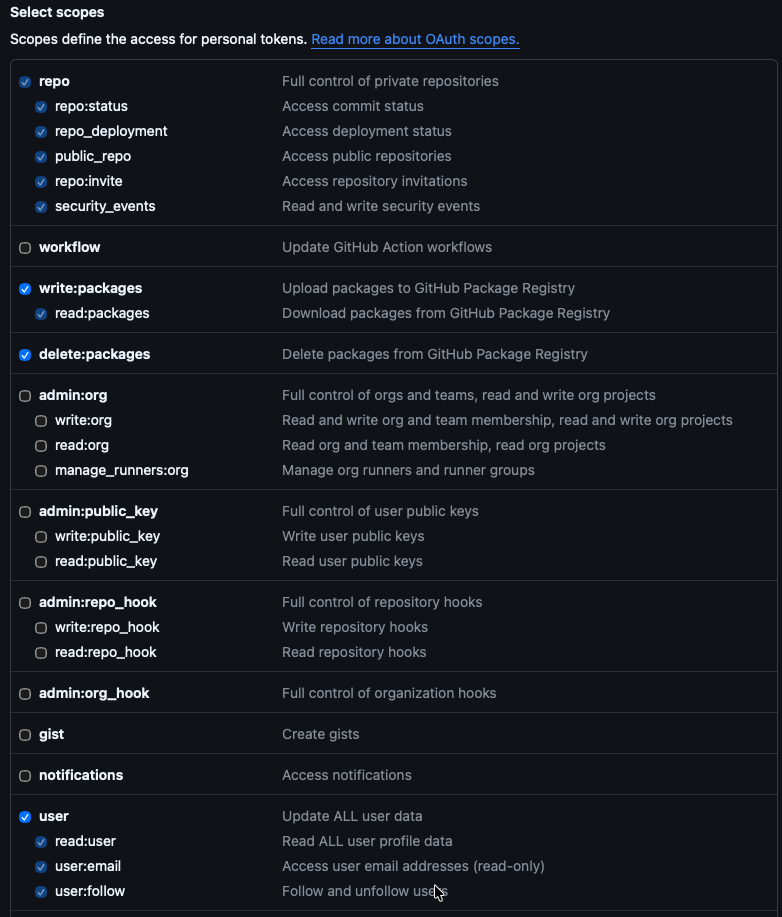 - write:packages (to push/pull images)