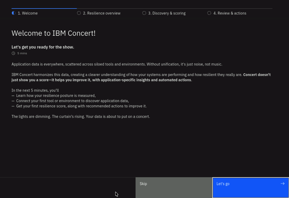 In the Welcome to IBM Concert! dialog, make sure to select Skip