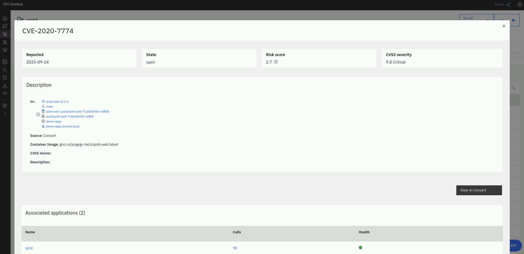 Note that you can see additional information about the vulnerability back in Concert using the View in Concert button on the right. Try it out!