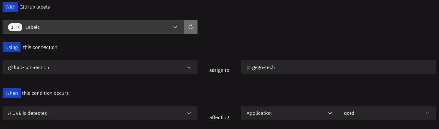 You will use the personal access token that you created previously to configure a GitHub Connection. Concert will leverage this connection to create GitHub issues for the detected vulnerabilities in the qotd application.