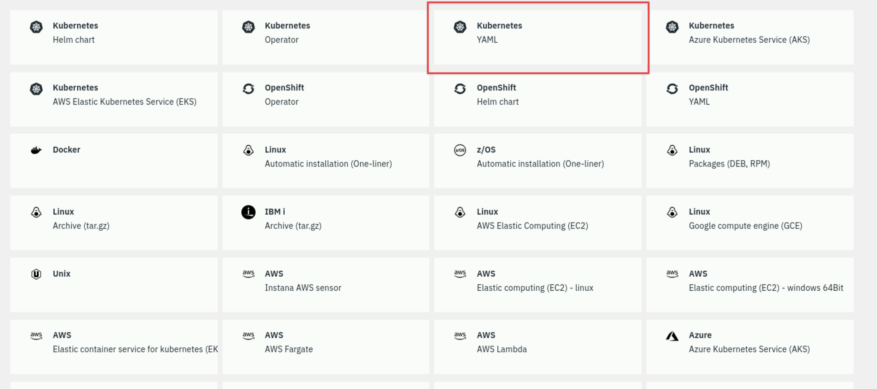 Select the tile Kubernetes YAML.