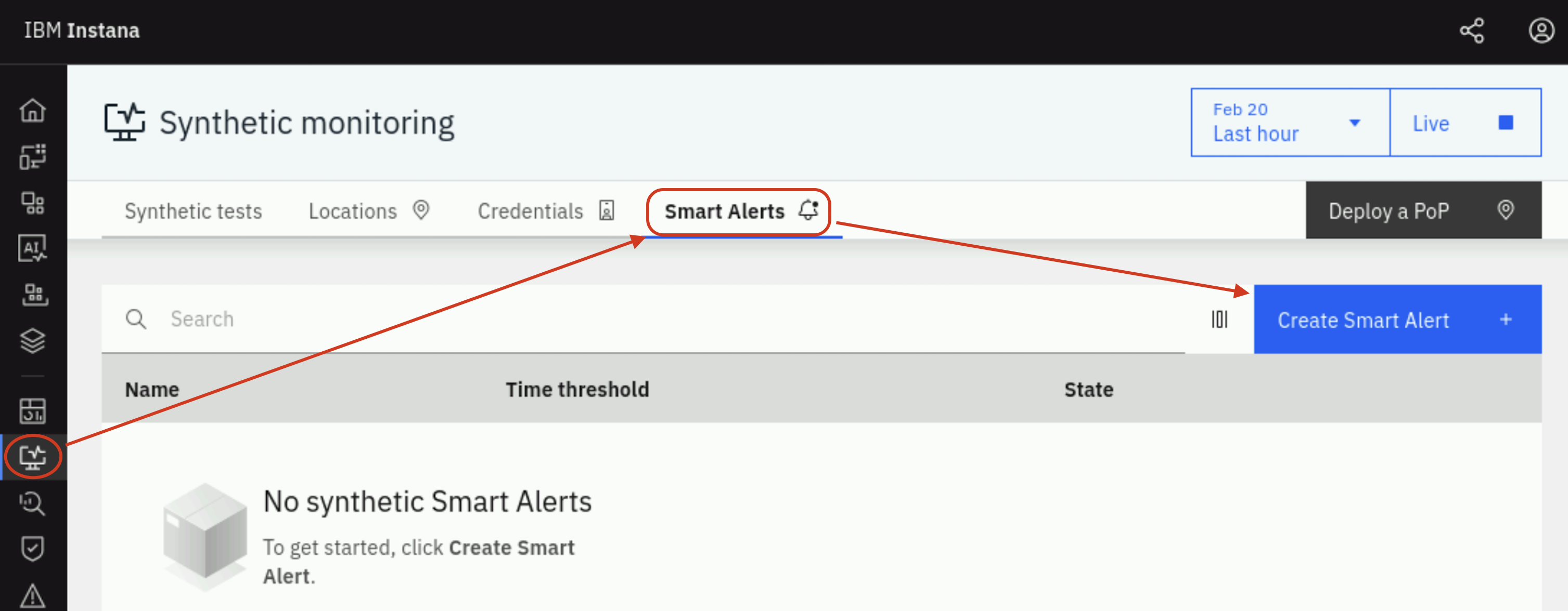Now, back in the Synthetic Monitoring view, select the Smart Alerts tab to see the newly configured alert:
