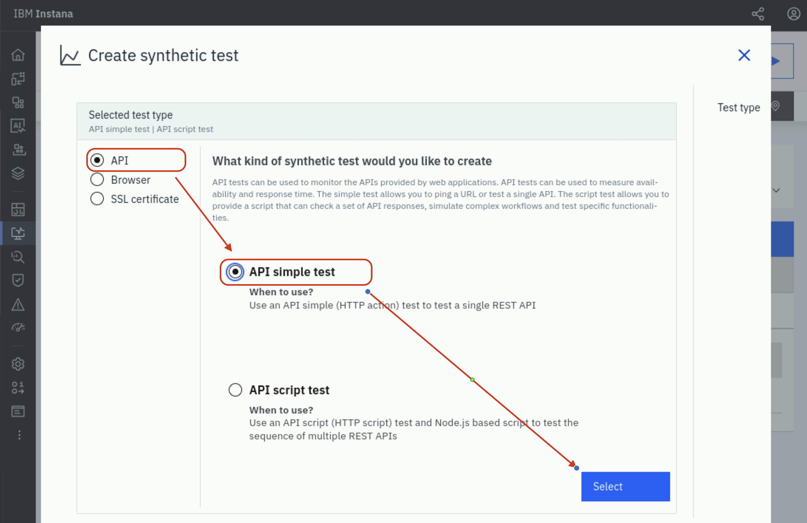 - Creating a single REST API synthetic test.