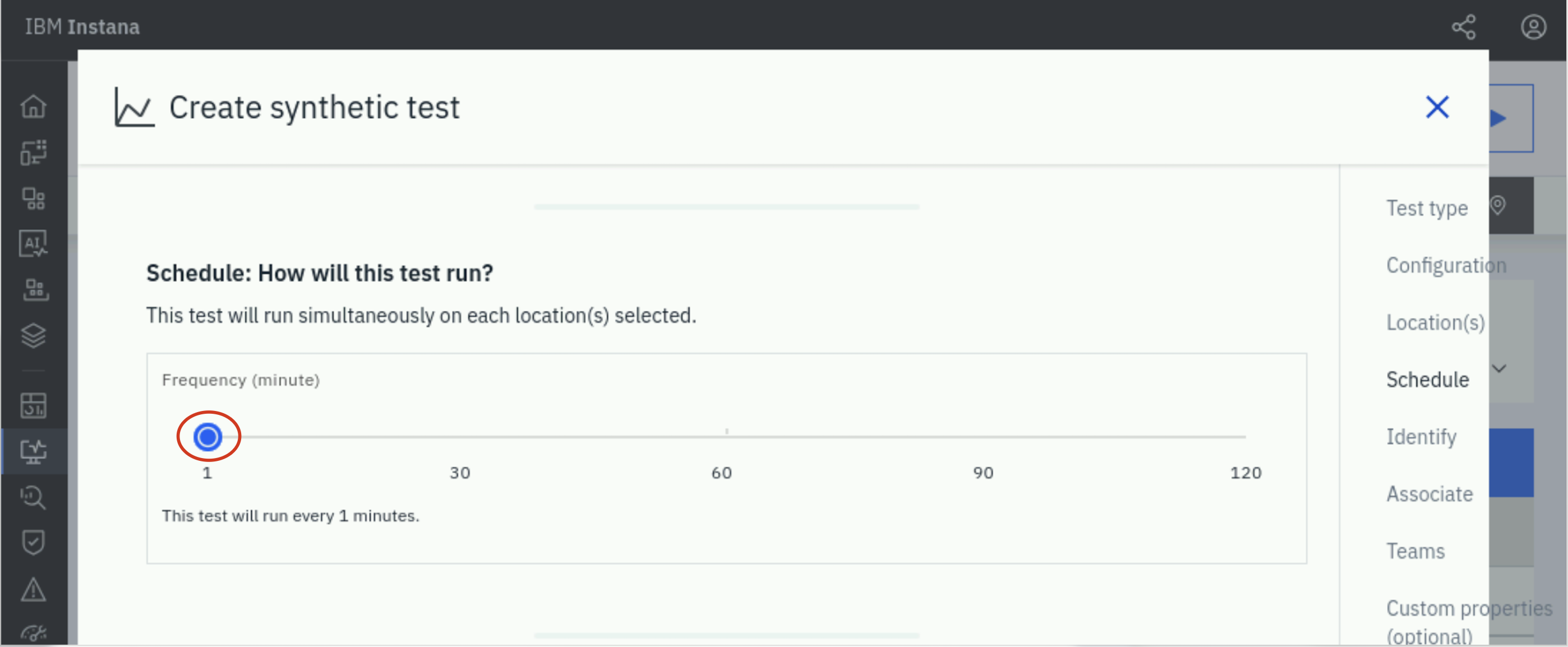 In the Scheduling section, adjust the time slider to run the test every 1
